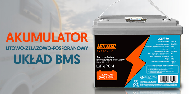 AKUMULATOR LITOWO-ŻELAZOWO-FOSFORANOWY Z UKŁADEM BMS LiFePO4 12.8V 70Ah