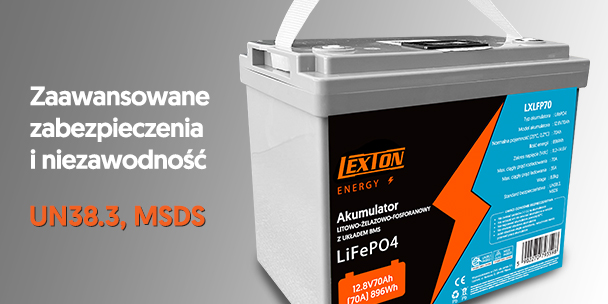 Akumulatory typu LiFePO4 (litowo-żelazowo-fosforanowe) z wbudowanym układem BMS charakteryzują się przede wszystkim bardzo niską wagą oraz dużą ilością cykli pracy - żywotność ok. 6000 cykli przy DoD 60%. Dzięki dużej cykliczności oraz bardzo niskiemu samo rozładowaniu,akumulator LiFePO4 świetnie sprawdza się, zarówno w układach zasilania awaryjnego, jak w pracy w instalacjach OFF-GRID. Niska waga pozwala zastosować urządzenie w instalacjach w pojazdach (kampery, foodtrucki) oraz łodziach. Wbudowany układ BMS zapewnia przechowywanie baterii bez utraty pojemności nominalnej przez długi czas oraz kontroluje procesy ładowania i rozładowywania akumulatora.