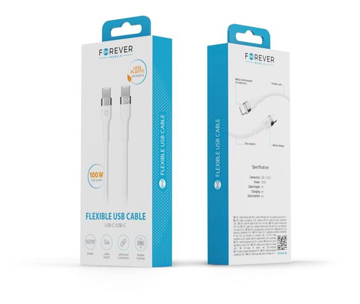 FOREVER KABEL FLEXIBLE USB-C-USB-C 2,0m 100W BIAŁY