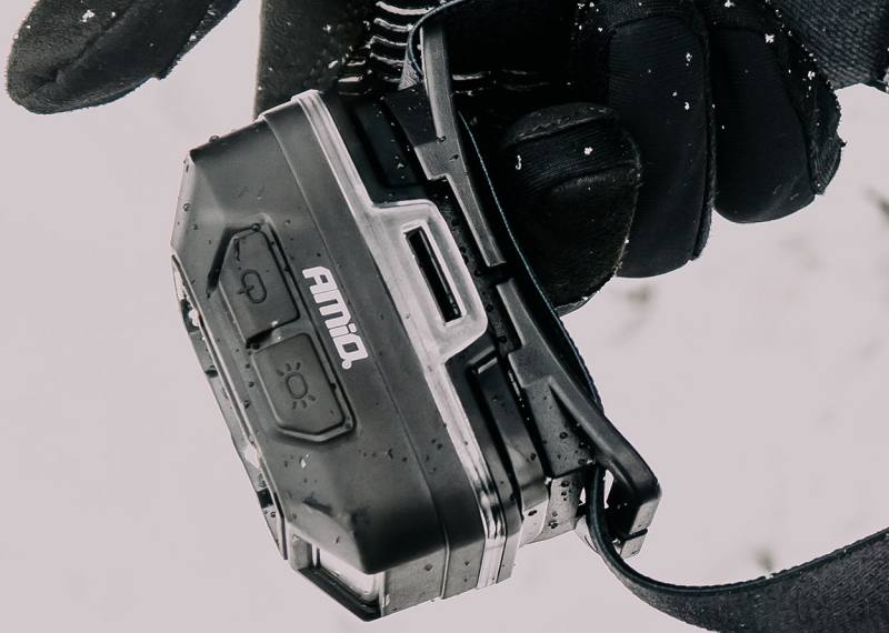 Latarka czołowa AMIO LED 2xXPG+10SMD 1800mAh HQ
