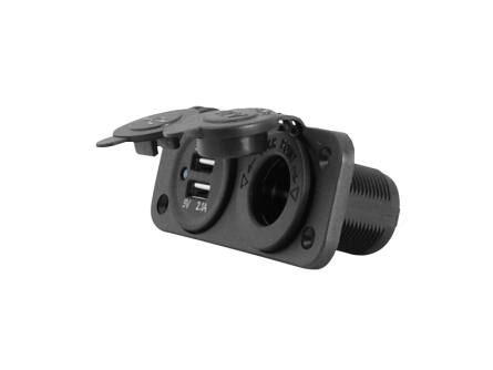Zestaw stanowiący gotowy do zabudowy panel wyposażony w ładowarkę USB i gniazdo 12V. Zestaw składa się z przykręcanego panelu, dwóch modułów, śrub i nasuwek kablowych. Panel ma miejsce na dwa okrągłe moduły, które przywierdzone są do niego nakrętką od spodu. Produkt stanowi gotowe i eleganckie rozwiązanie dla kogoś, kto potrzebuje rozszerzyć funkcjonalność swojego samochodu o dodatkowe złącza.
