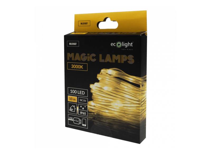 MAGICZNE LAMPKI CIEPŁE B. 3000K 100-LED 10m USB DC5V IP65 STEROWANE APLIK.