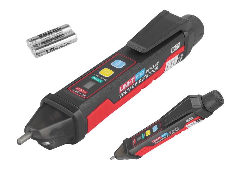 UT12E-EU to bezkontaktowy detektor napięcia przemiennego AC. Wskaźniki napięcia AC są szeroko stosowane w konserwacji urządzeń niskiego napięcia, takich jak przewody, kable, gniazda i inne instrumenty elektryczne lub elektroniczne. Jest to bardzo przydatne narzędzie dla elektryków. UT12E-EU to profesjonalny wykrywacz napięcia UNI-T, który jest odporny na kurz i wodę o stopniu ochrony IP67 i może wytrzymać upadek z wysokości do 2 metrów. Te trwały detektor napięcia doskonale nada się do pracy w trudnych warunkach.