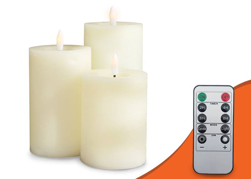 Ozdobne świece świeczki LED z parafiny, zestaw 3 sztuki + pilot, kremowe