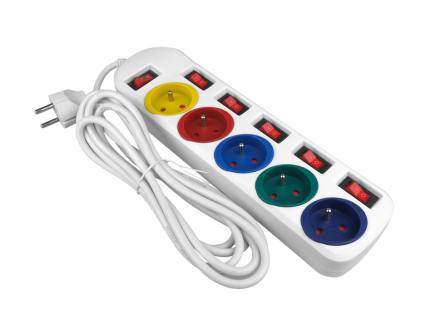 PRZEDŁUŻACZ SIECIOWY 5 GNIAZD Z UZIEMIENIEM Z WYŁĄCZNIKAMI 3M MULTIKOLOR, BIAŁY