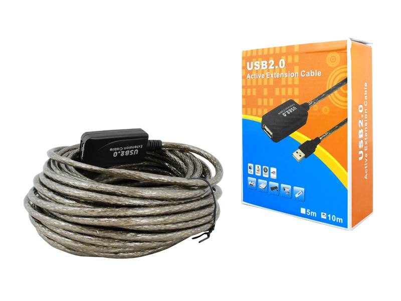 Wysokiej jakości aktywny przedłużacz USB 2.0 o długości 10 metrów.