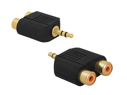 Przejście Jack: wtyk 3.5 - 2 gniazda RCA, pozłacane.