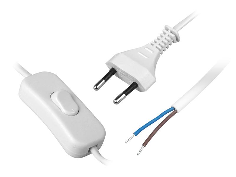 Przewód przyłączeniowy z wtyczką płaską 2x0,5 OMY z wyłącznikiem 2m, biały