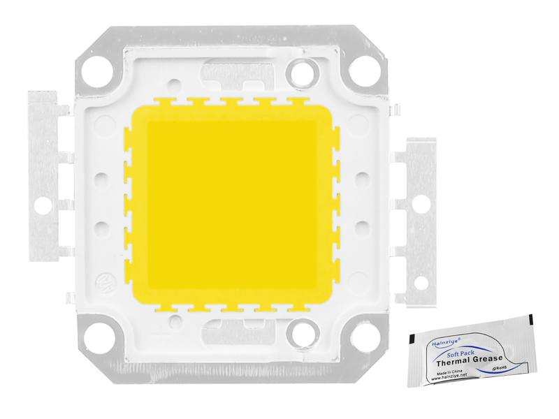 Dioda COB 100 W Premium, światło ciepłe białe + pasta silver.