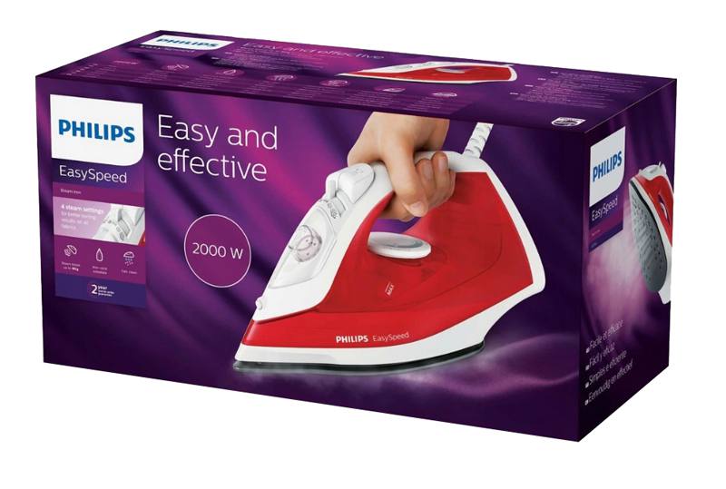 Żelazko EasySpeed zapewnia łatwe i skuteczne prasowanie dzięki dużej ilości pary i nieprzywierającej stopie.