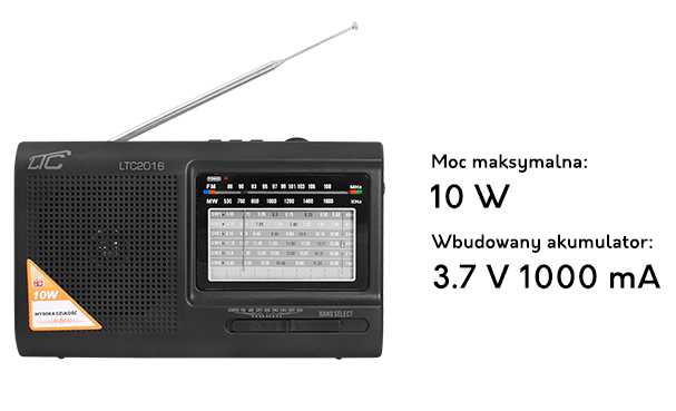 PS Radio przenośne LTC-2016 WILGA USB z wbudowanym akumulatorem, CZARNE.