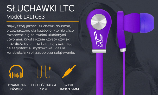 Słuchawki LTC douszne LTC63, fioletowe.