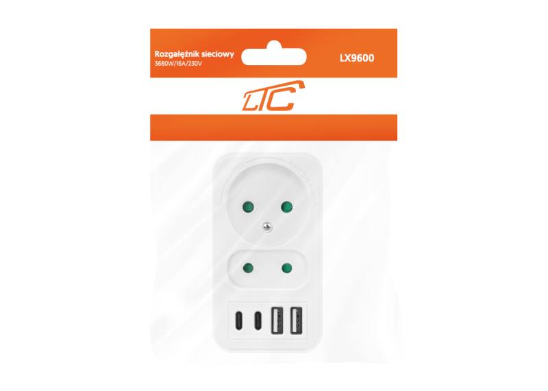 Rozgałęźnik LX9600 to praktyczne rozwiązanie dla każdego, kto potrzebuje jednocześnie zasilić kilka różnych urządzeń. Wyposażony jest w jedno gniazdo płaskie, idealne do sprzętów o mniejszym poborze mocy, takich jak lampki, ładowarki czy drobne akcesoria biurowe, oraz jedno gniazdo okrągłe z bolcem uziemiającym, przystosowane do urządzeń wymagających większej mocy – na przykład komputerów, ekspresów do kawy czy czajników elektrycznych. Dzięki temu rozgałęźnik pozwala bezpiecznie i wygodnie korzystać z różnych typów urządzeń w jednym miejscu.BEZPIECZEŃSTWO I KOMFORT UŻYTKOWANIA