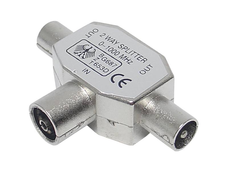 Trójnik - gniazdo TV - 2 wtyki TV, metalowy