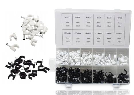 UCHWYTY KABLOWE FLOP ZESTAW 4,5,6,8,10,12mm BIAŁE/CZARNE 390szt BOX