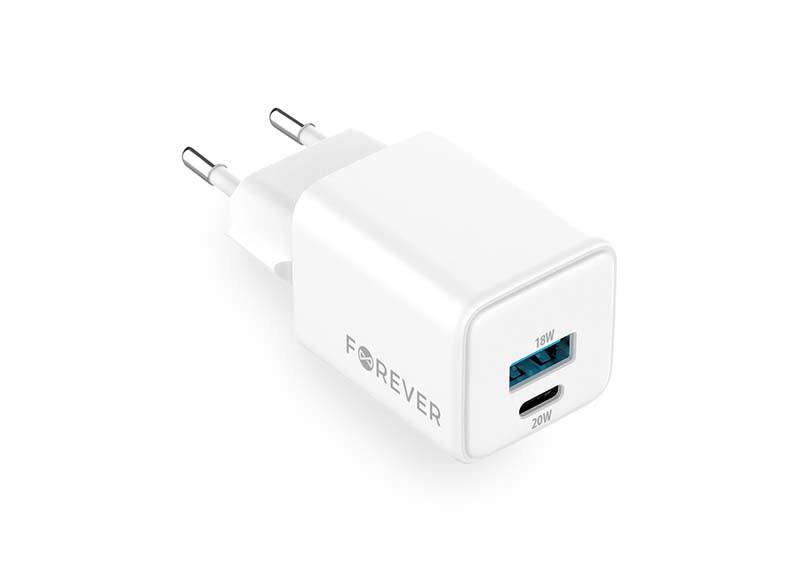 W ŁADOWARKA SIECIOWA FOREVER 20W GaN PD QC USB-C/USB BIAŁA TC-08