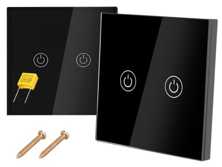Włącznik światła dotykowy, schodowy kpl.2szt (nadajnik + odbiornik) podwójny, szklany panel, czarny