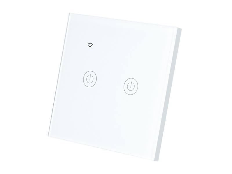 Nowoczesny, minimalistyczny podwójny włącznik światła z funkcją WIFI, wykonany ze szkła hartowanego.