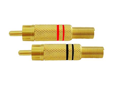 Wtyk RCA złoty z odgiętką op.20szt, CZERWONY/CZARNY.