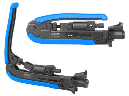 Zaciskarka kompresyjna złączek typu F, BNC, RCA na kablach koncentrycznych.