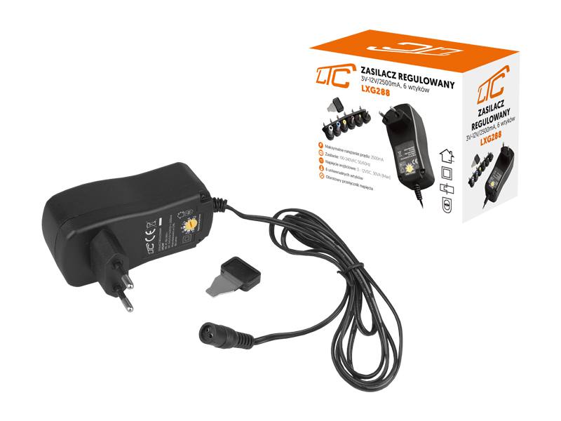 | W zestawie | 1 x Zasilacz LTC 6 x Wymienny wtyk 1 x Przyrząd do regulacji napięcia |