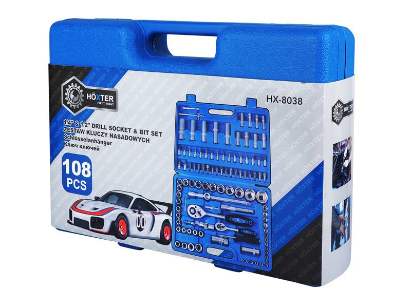 Zestaw narzędzi HX-8038, 6-22 mm, 108-elem. HQ klucze nasadowe, bity, torxy, imbusy.